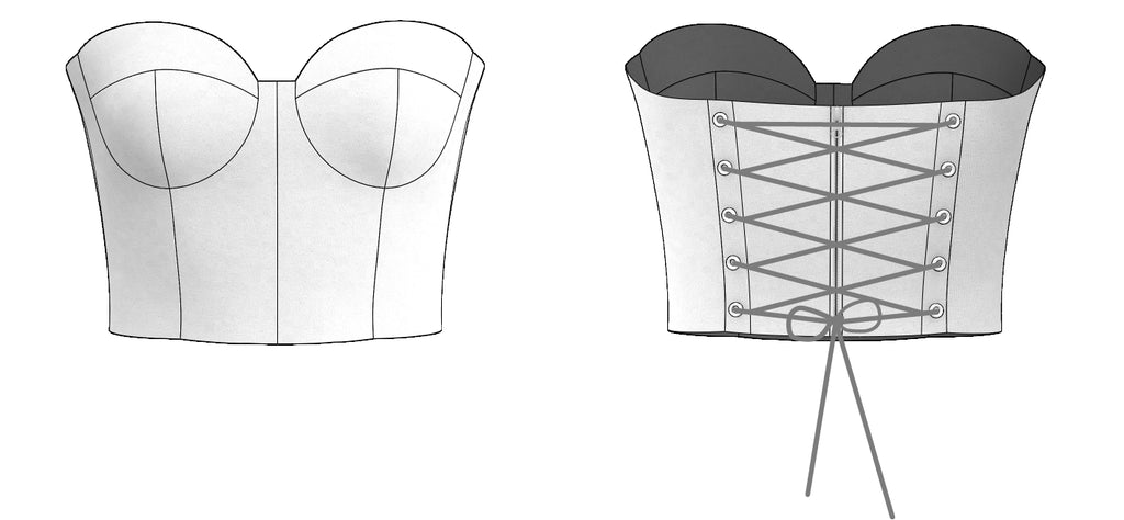 Hello, and welcome to the La Farfalla Bustier! This bustier is really beginner friendly, and truly such a classic style! I suggest using fabric with a little sturdiness, maybe taffetas, cottons, or fabrics that respond well to a fusible interfacing.