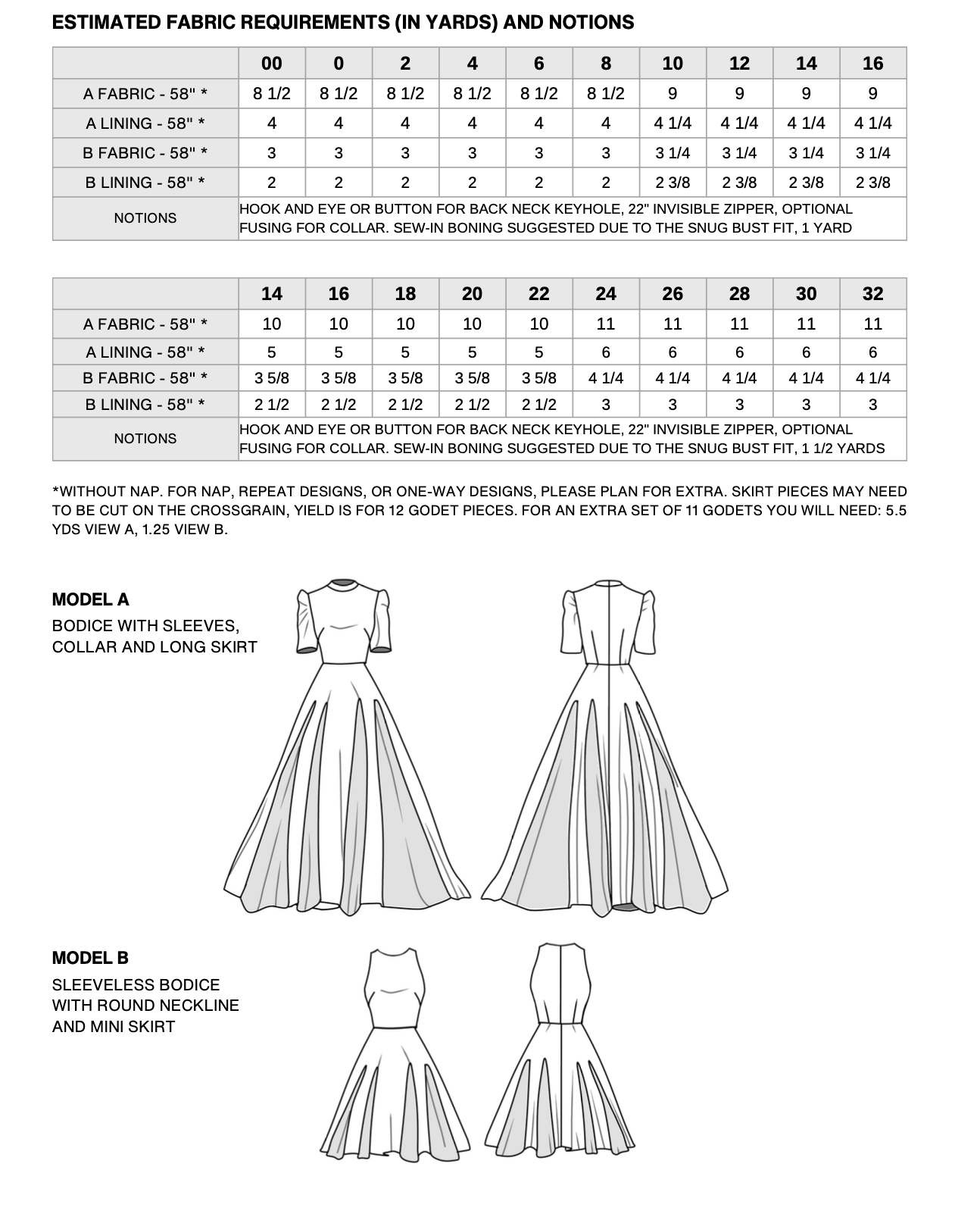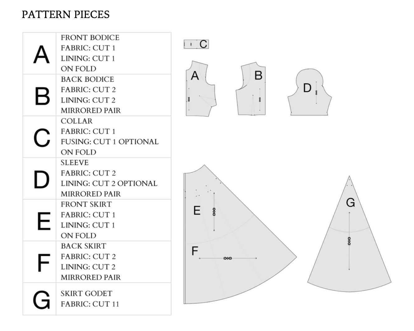 The Pattern will have all the notions and cutting layout you will need in the provided PDF files.