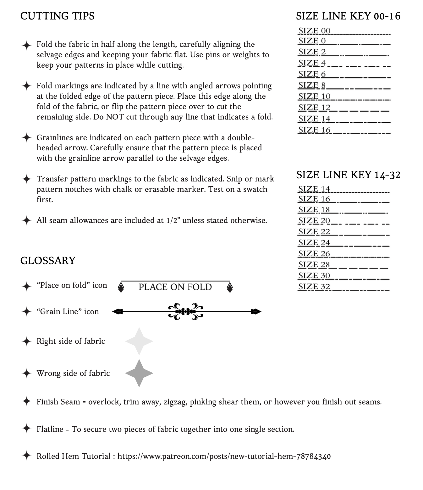 Please take note that the seam allowances on this pattern are 1/2” unless otherwise stated.