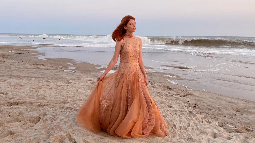 Step into the allure of evening elegance with the Vespertine Dress, a design inspired by the Victorian term for those who come alive after dusk.