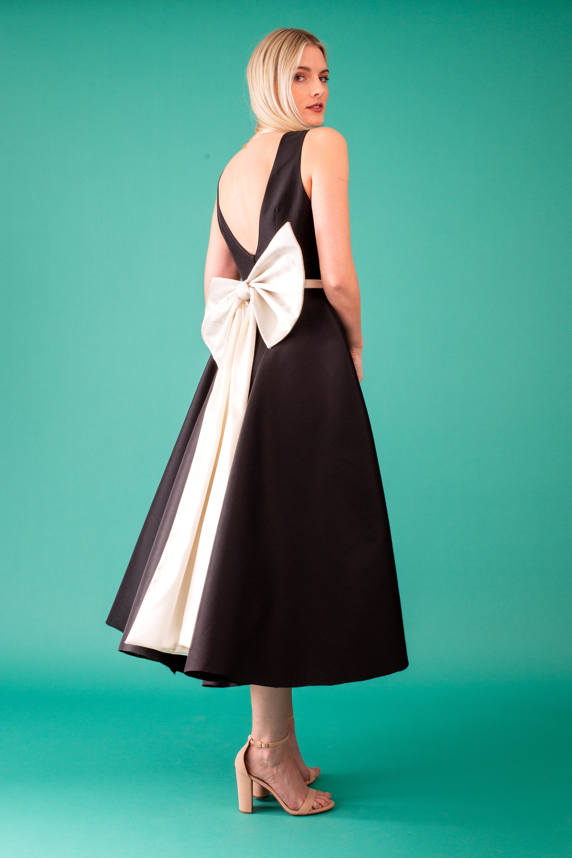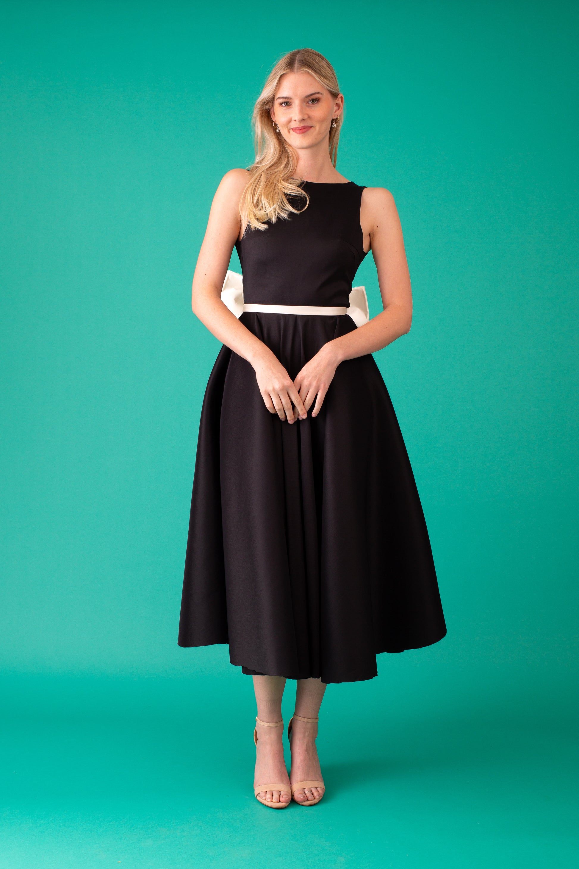 The Diamond Dress sewing pattern channels 1960s glamour with a modern twist, inspired by the iconic elegance of Breakfast at Tiffany’s. Featuring a rounded front neckline, a dramatic deep V-back, and a statement bow detail, this vintage-inspired dress combines sophistication with playful charm. Its midi length and flared silhouette create a flattering fit for a variety of body types, making it perfect as a cocktail dress, homecoming dress, or party dress sewing project. Ideal for sewists looking to craft a timeless, retro-inspired look for special occasions or everyday elegance.