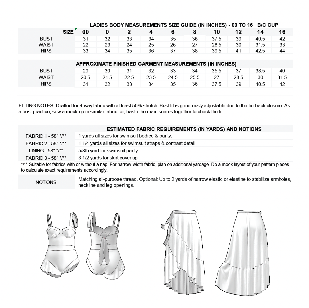 The Martini Swimsuit sewing pattern brings vintage-inspired glamour to your swimwear collection with three stylish designs in one. This versatile pattern includes a color-blocked one-piece, a classic bikini, and a one-piece with retro skirted shorts, all drafted for B/C–D/DD cups for a flattering fit. It also includes a bonus beach coverup and video tutorials, including a guide on how to alter for additional cup sizes. Perfect for sewists looking to create a timeless, customizable swimsuit that’s as chic as it is functional..