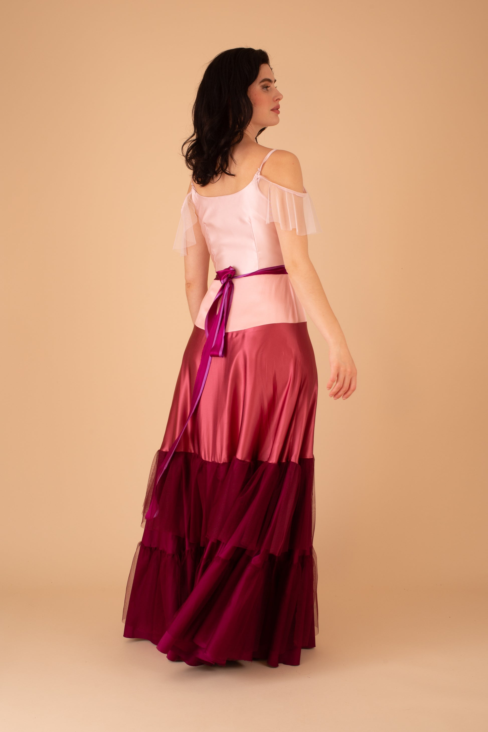 Duchess Satin- Structured and regal, its perfect for a dress of this sort.