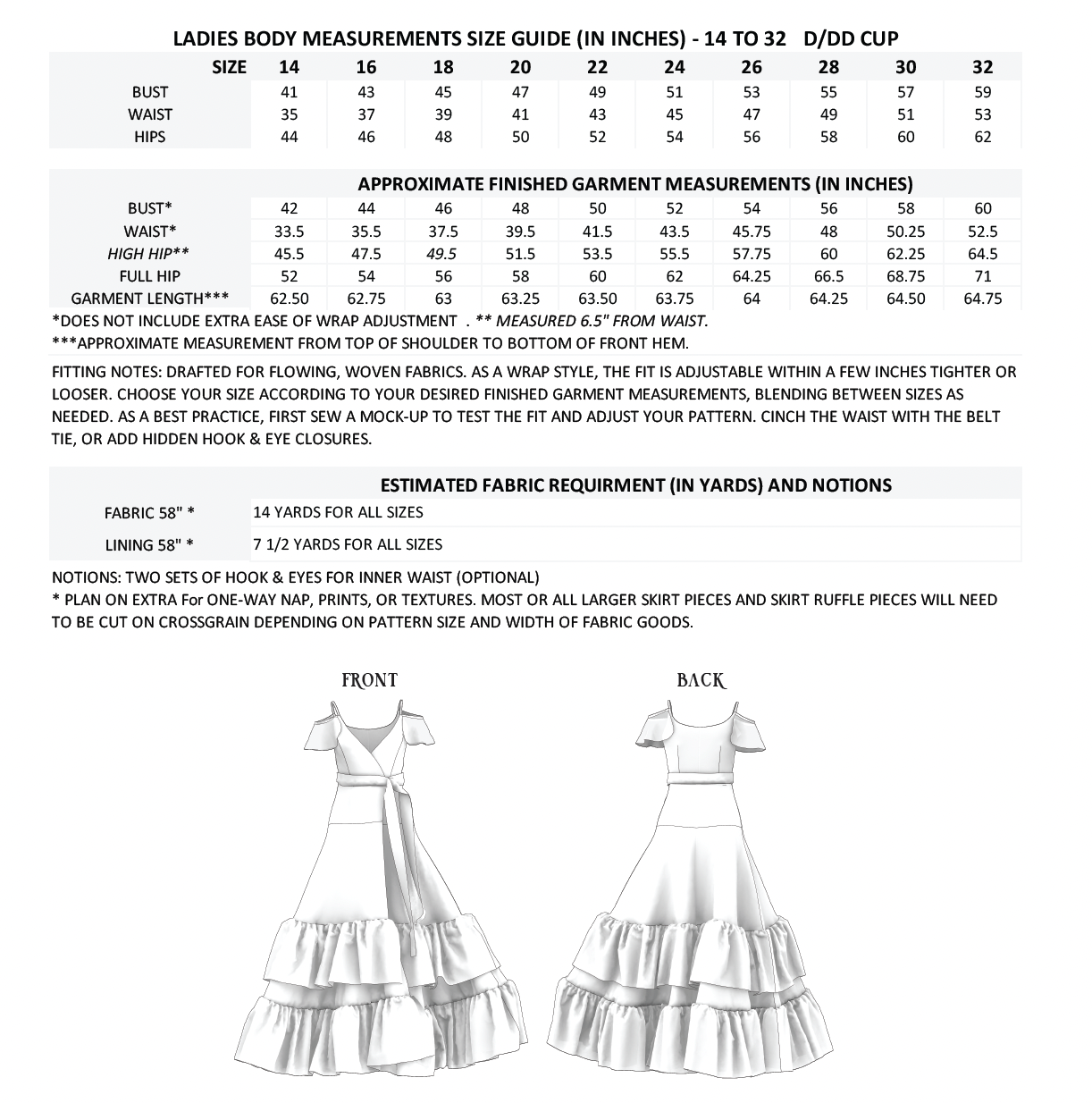 The Oleander Dress sewing pattern is a romantic wrap dress designed for versatility and customizable style. Featuring an optional off-the-shoulder strap with flutter sleeve, a wrap closure secured by hook-and-eyes or a waist tie, and layered skirt panels, it offers endless ways to make the look your own. With options for ruffled detailing and striking color blocking, this pattern is perfect for creating a statement dress that feels equally at home at summer parties, weddings, or casual gatherings. Ideal for sewists seeking a feminine, customizable wrap dress with modern flair.