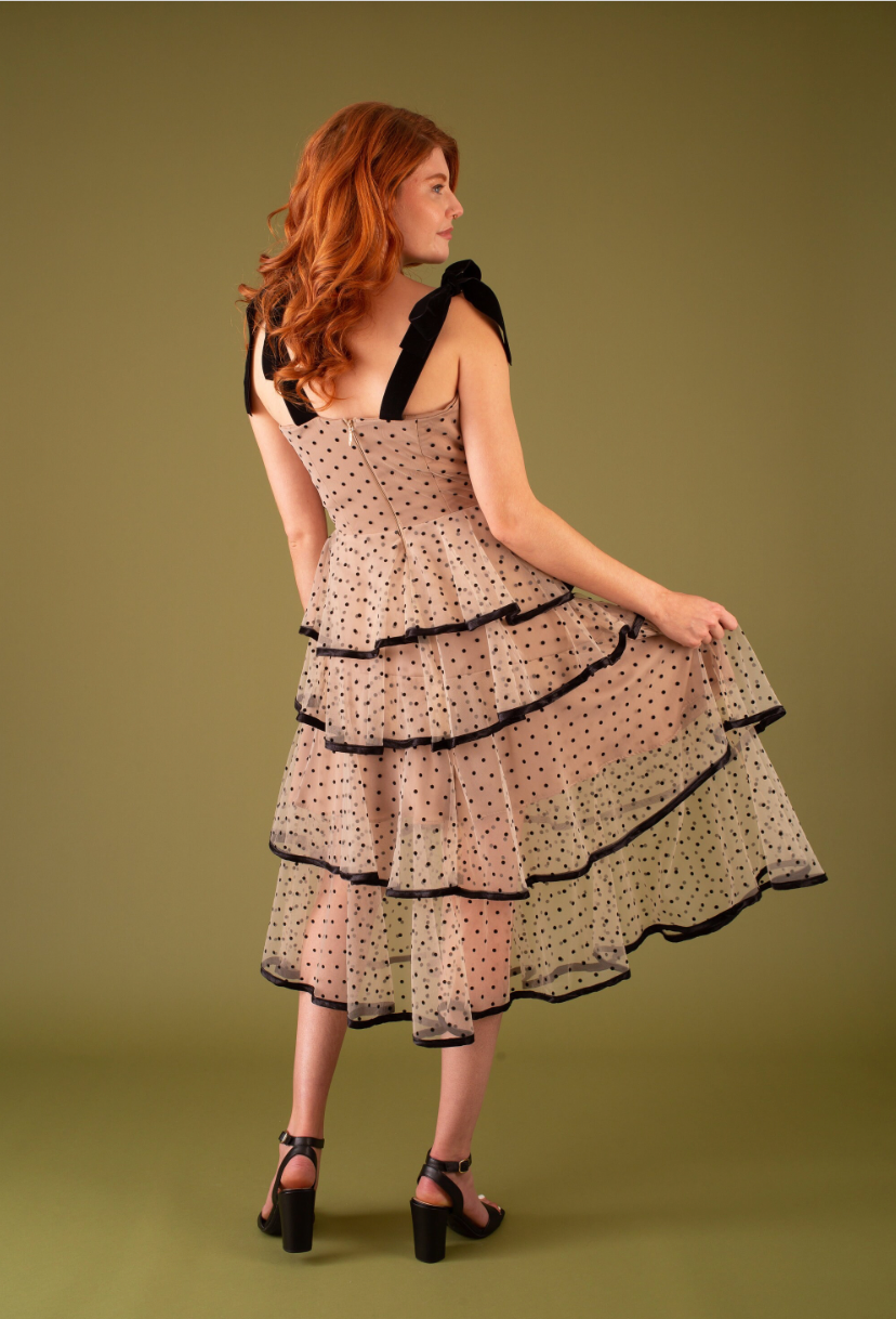 The Pacifica Dress is a playful, size-inclusive sewing pattern featuring two strap styles, layered flounces, and an optional peplum. Designed for lightweight or flowy fabrics, this silhouette flatters a wide range of body types. Customizable and fun to sew—perfect for advanced beginners and beyond.