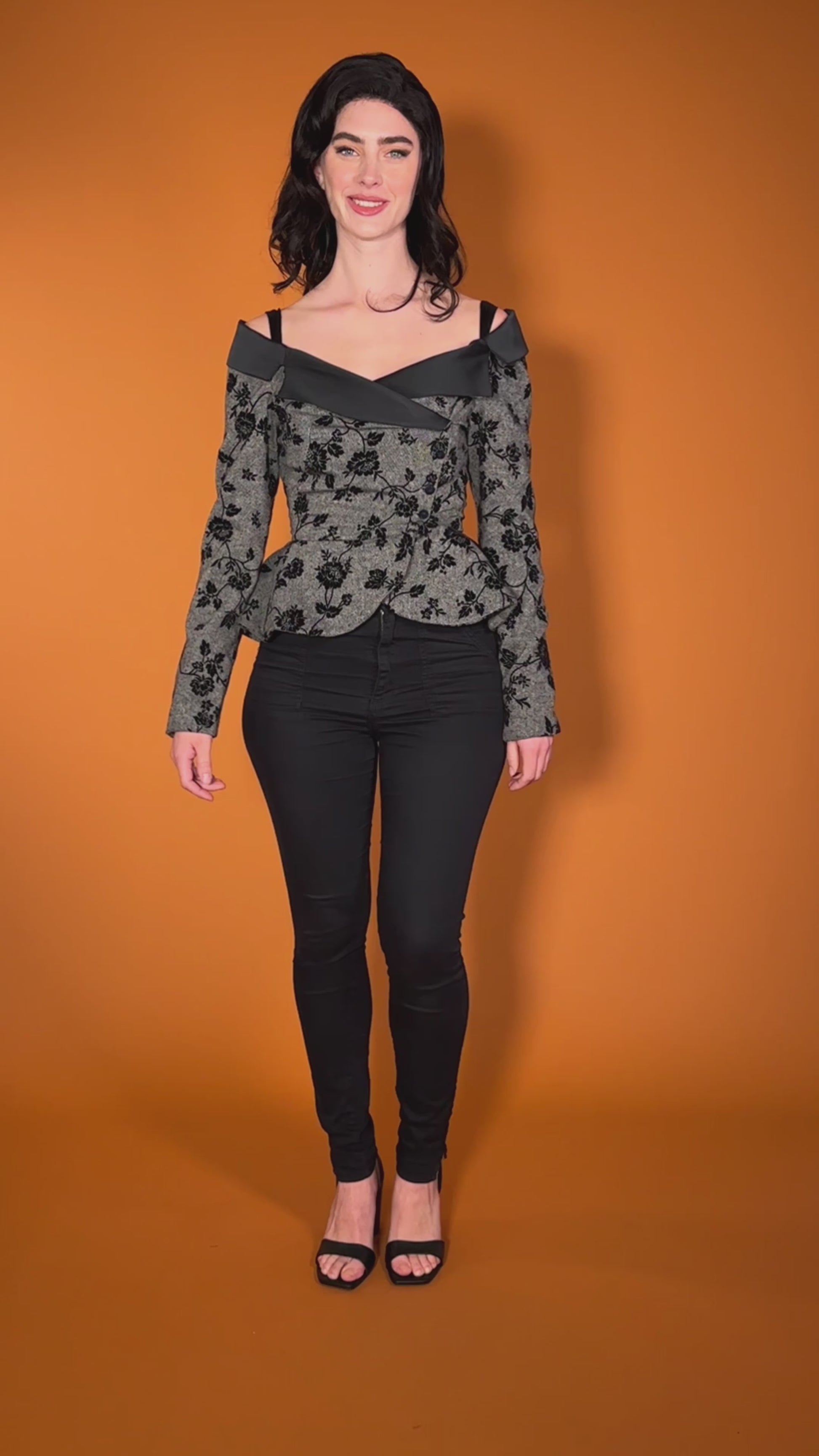 The Vespertine Jacket is a gothic-inspired statement coat that blends dark romance with timeless elegance. Designed for eveningwear, special occasions, or bold layered outfits, it features a draped off-the-shoulder collar, asymmetrical button closure, and a tailored fit with a sculpted high-low peplum. Fully lined with contrast detailing, this designer outerwear piece moves with dramatic elegance, making it perfect for those who love unique, show-stopping fashion.