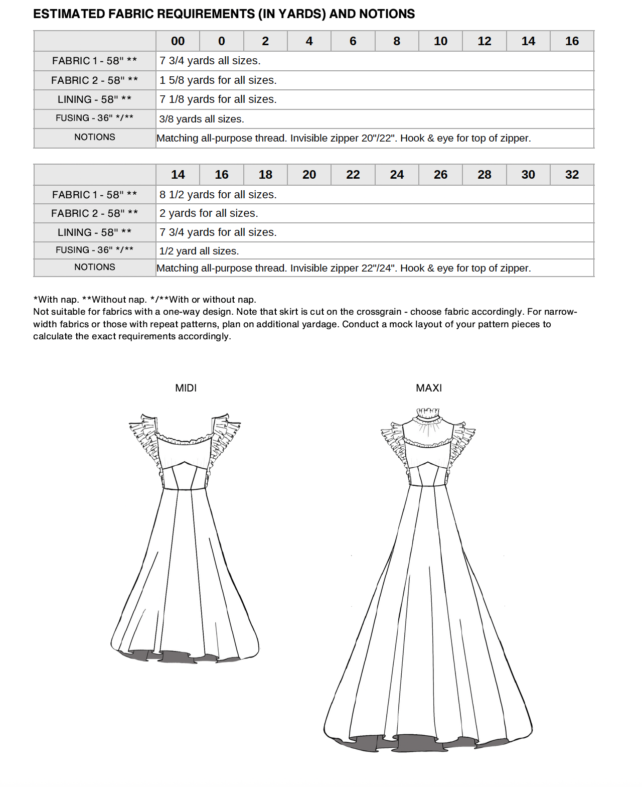 The Villanelle Dress sewing pattern blends Gilded Age opulence with modern fashion, creating a romantic statement piece for any occasion. Available in two striking versions, it features either a bold open square neckline for a contemporary twist or a ruffled yoke with a charming collar for a more vintage-inspired look. With cascading ruffles and length options from midi to sweeping full-length, this versatile pattern is perfect for weddings, formal events, or dramatic everyday style. Designed for sewists who love timeless silhouettes with a touch of grandeur, Villanelle is a dress that commands attention.