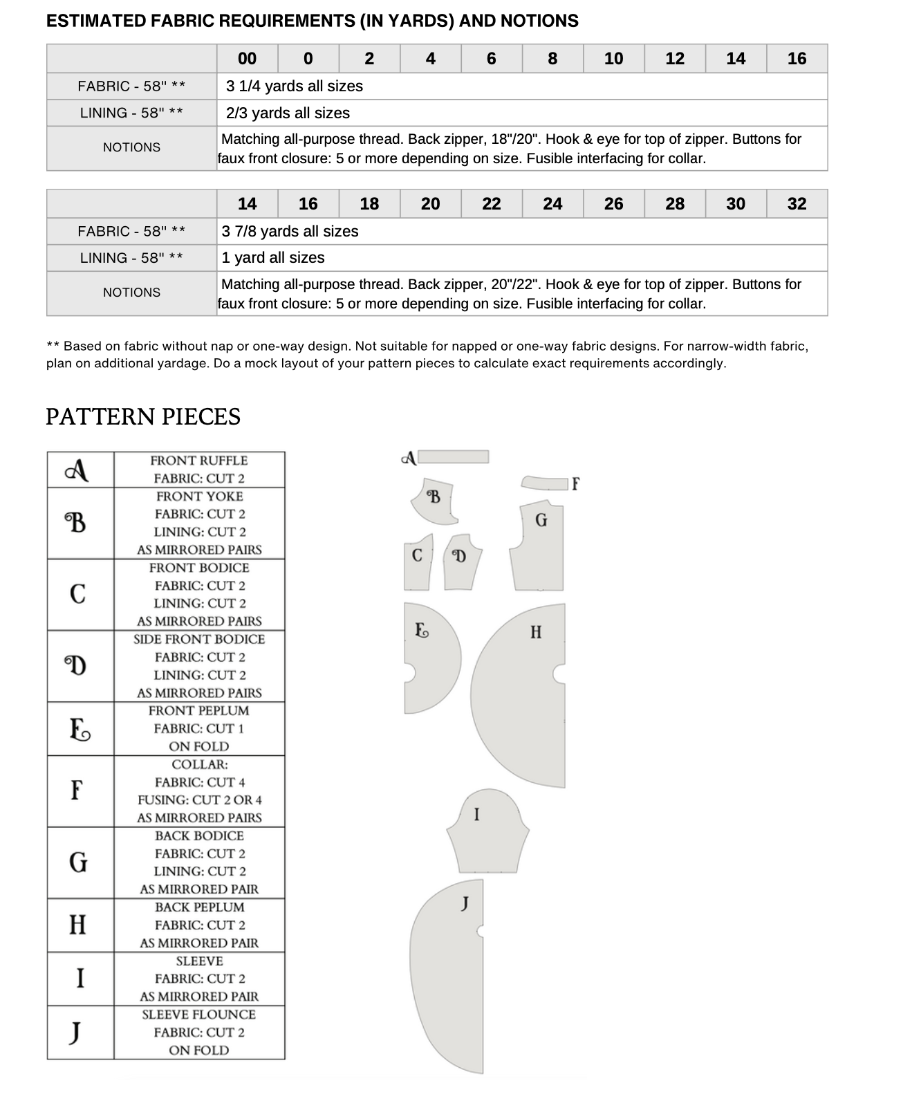 The Pattern will have all the notions and cutting layout you will need in the provided PDF files.