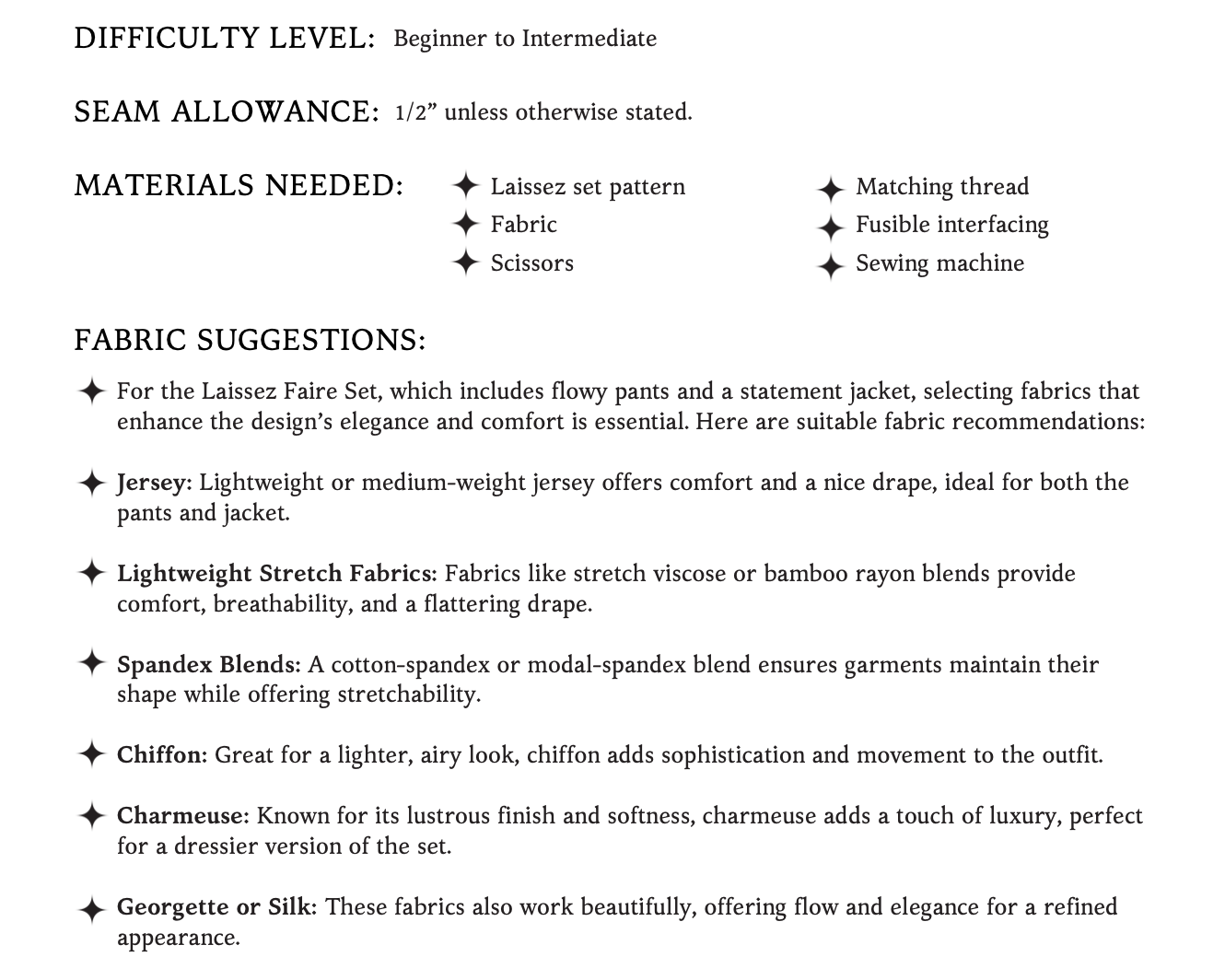 The Laissez Faire Lounge Set Sewing Pattern Guide